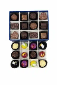 Customize your brand with our elegant 24-piece truffle box, featuring handcrafted, nut-free chocolates and premium packaging designed to impress.
