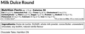 Ingredients: Sugar, Cocoa Butter, Whole Milk Powder, Cocoa Mass, 35% Cream, Dulce de Leche, Unsalted