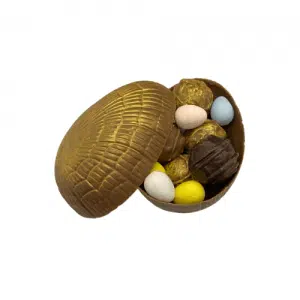 Milk or Dark gold chocolate Easter egg filled with 6 truffles (milk chocolate, dark chocolate) and eggies. Packaged in a gable box – the perfect solution to gift chocolate to your friend, family or colleague. Nothing says -Happy Easter quite like a large chocolate Easter egg filled with decadent truffles!