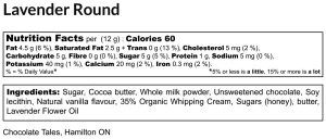This delightful truffle Infused with locally sourced lavender from Weir’s Lane Lavender Farm, decadent Belgian milk chocolate and heavy cream will leave you with a linger of caramel and subtle notes of lavender.