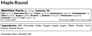 With the rich and creamy milk chocolate ganache center, we infuse maple granules and natural flavouring.