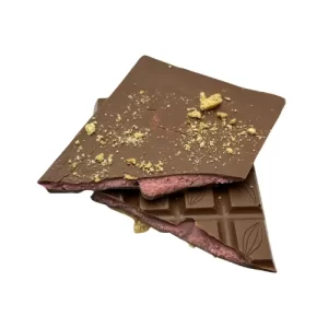 Indulge in our Alunga Milk Chocolate Bar, featuring a decadent New York cheesecake center and a crunchy graham cracker backing for a delightful blend of creamy and crunchy textures. Wrapped in exquisite Japanese Chiyogami paper and finished with an elegant ribbon, this chocolate bar is a sophisticated indulgence and a delightful gift for any chocolate lover.