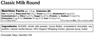 Ingredients: Sugar, Cocoa Butter, Whole Milk Powder, Cocoa Mass, 35% Cream, Unsalted