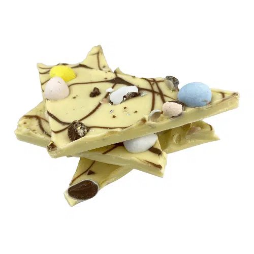150g – White chocolate, Eggies & Milk Chocolate Swrils packaged in cello.