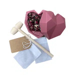 This Chocolate Heart & Rose Tea is a 2-in-1 handmade ruby chocolate heart filled with culinary rose petals. Break it apart with the wooden mallet and you’ll get an explosion of romantic rose petals. After you’re done eating the chocolate, use the rose petals to make you and your significant other a warm cup of rose petal tea. You’ll receive one ruby chocolate heart, a wooden mallet, two cloth tea bags and instructions. Not only is this gift fun and surprising, but it will practically burst open into a night of romance.