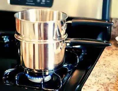 Add the butter and vanilla extract and continue stirring until smooth.